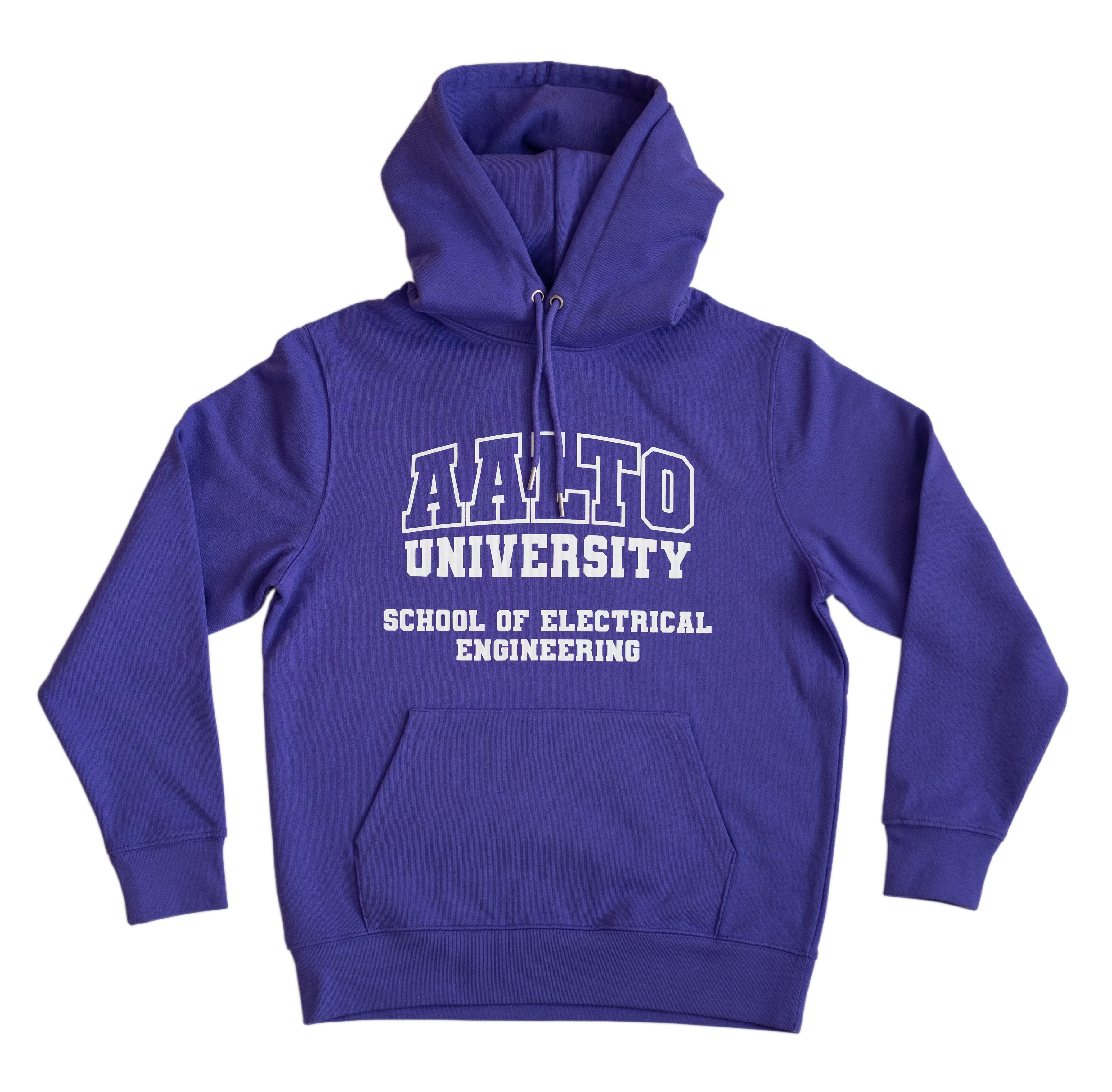 Luomupuuvillasta valmistettu huppari, jossa Aalto University School of Chemical Engineering -printti.