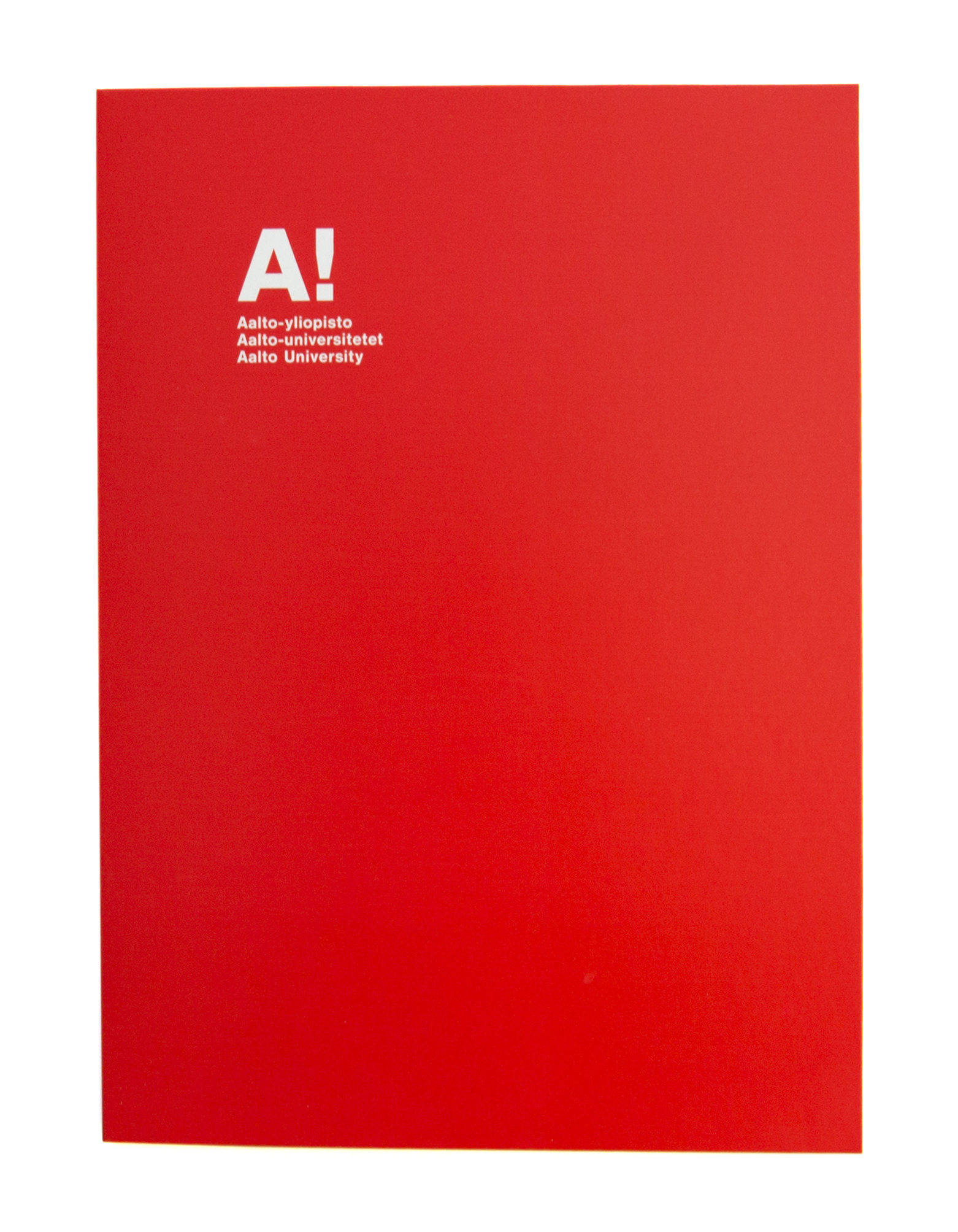 Punainen mattapintainen kartonkifolderi, jonka kannessa Aalto-yliopiston logo.